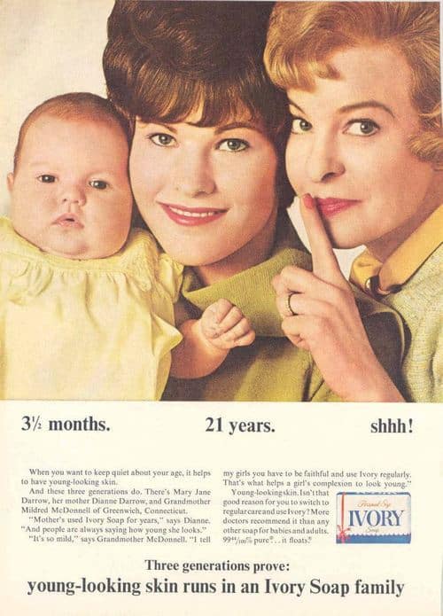 A 1959 Ivory soap commercial features a white upper-class attractive young woman